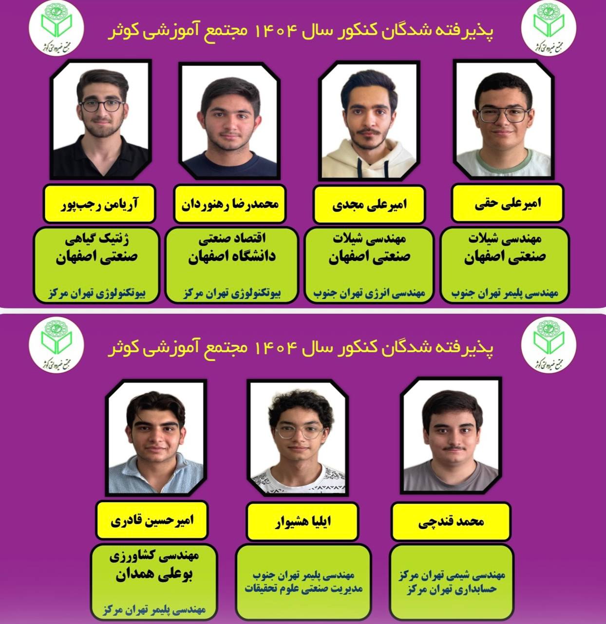 مجتمع کوثر افتخار دارد با تجربه بزرگان خود و با کادری جوان در خدمت فرزندان این مرز و بوم باشد.